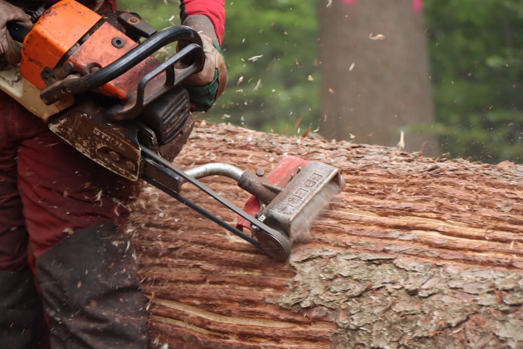 Es gibt zwei Varianten: Da wäre der Einsatz von Debarking Harvestern, das sind mit Entrindungsköpfen ausgestattete Erntemaschinen. Diese fällen die Fichten und entrinden sie im Anschluss direkt vor Ort. Fehlt die Rinde, kann sich der Buchdrucker nicht mehr vermehren. Vorteil ist hier, dass die Biomasse im Wald bleiben kann. Ökologisch noch besser, dafür auch zeitaufwendiger, ist das streifenförmige Entrinden von Baumstämmen. Auch hierbei werden die Fichten zunächst gefällt. Im Anschluss kommen Waldarbeiter-Trupps mit speziellen Motorsäge-Aufsätzen zum Einsatz. Diese entrinden den Baum streifenförmig auf kompletter Länge, auch dabei wird die Ausbreitung des Buchdruckers effektiv unterbunden. Jedoch kann sogar ein Teil der Rinde am Baum bleiben. So haben dutzende totholzbewohnende Pilze und Insekten, unter ihnen auch die Fressfeinde der Borkenkäfer, ein Lebensraum- und Nahrungsangebot. Diese Methode ist auch bodenschonend. Gerade auf Nassböden verringert sich die Druckbelastung auf den Untergrund, da die Bäume nicht aufwändig mit schwerem Gerät aus dem Wald transportiert werden müssen.